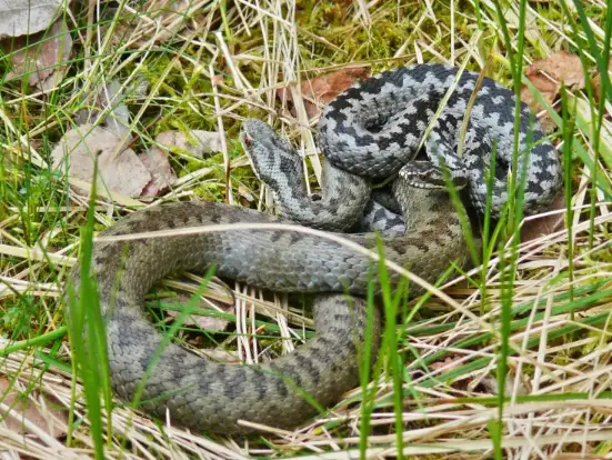 While vipers are snakes, they can be distinguished from grass snakes by their larger, wider heads and the absence of the zigzag pattern in grass snakes, which are usually green-gray with black stripes. Remember, grass snakes are not venomous.
