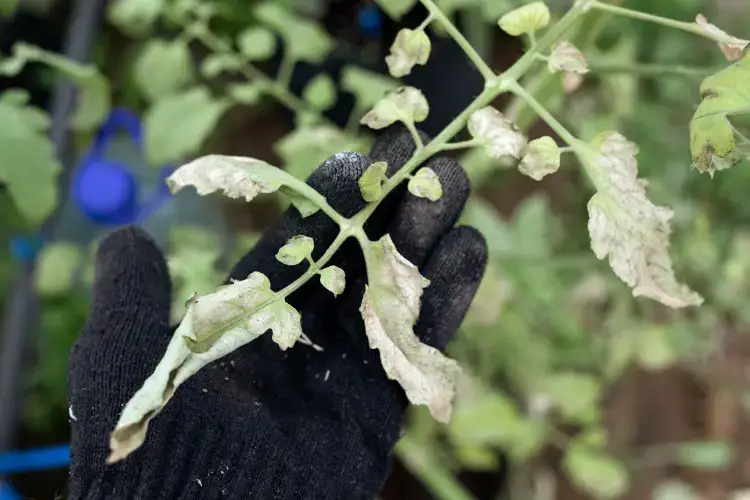 Overwatering isn’t always the cause of drying tomato plants. Sometimes, bacterial diseases such as Verticillium and Fusarium fungi block the plant’s water and nutrient flow. This causes wilting, yellowing, and eventual drying within a few days. Look for brown streaks under the surface of the stem tissue. Unfortunately, there’s no treatment for these diseases. The best course of action is to remove infected plants immediately to prevent further spread.