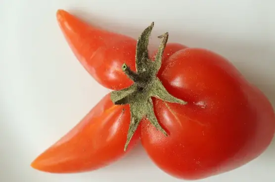 These deformities often appear as a “cat face” shape, which is why the condition is sometimes called this. Although deformed tomatoes are not usually the result of a disease, the openings created by the deformation can attract pests or diseases, making the fruit appear to be more seriously affected. In most cases, deformed tomatoes are still edible—simply remove the hardened tissue, and you’ll find a tasty tomato underneath.