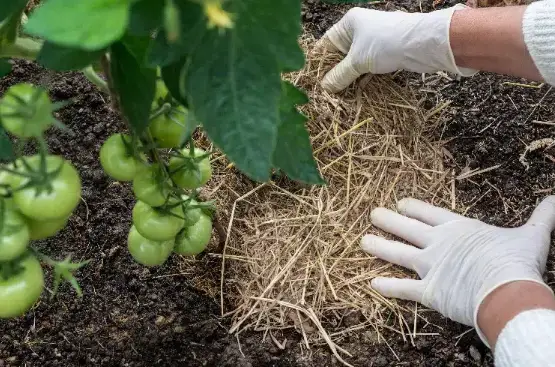 Applying mulch around your tomato plants will help keep the soil cooler during hot summer months and retain moisture, reducing stress on the plants.