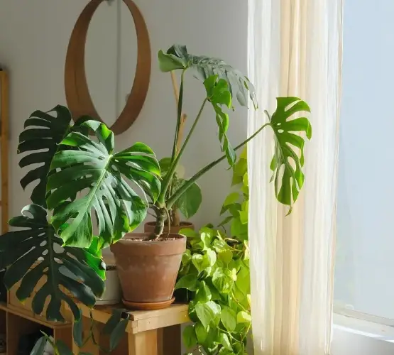 - Monstera prefers indirect sunlight. Too much direct sun can lead to drooping stems, yellowing leaves, or burnt foliage. Place your plant in a location with five hours of indirect sunlight per day.